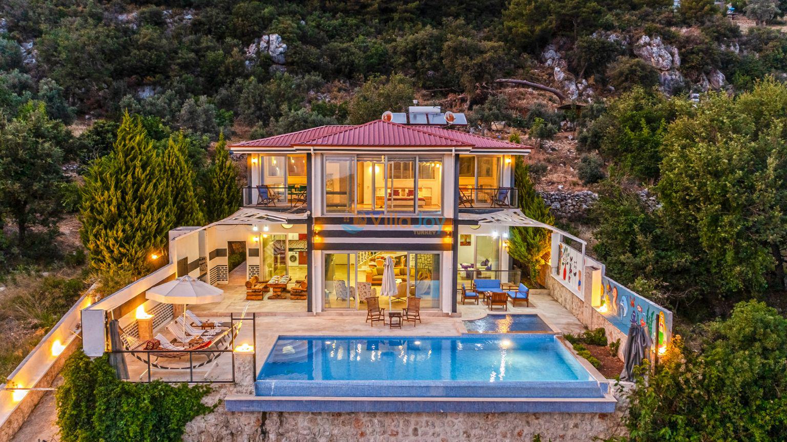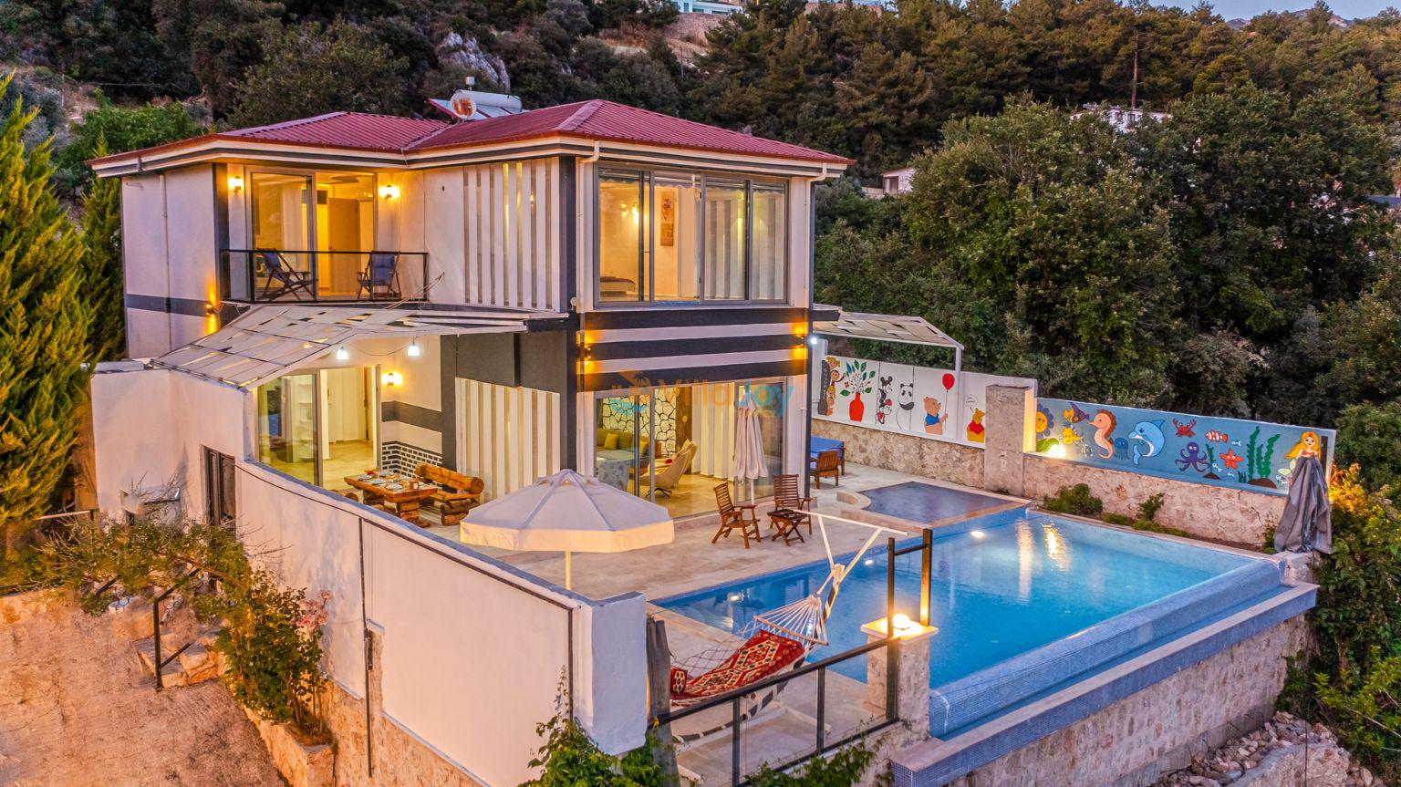 Located in the lush green Islamlar area of Kalkan, famous for its unspoiled nature, Villa Zilan offers a luxurious and peaceful holiday experience with an accommodation capacity of 8 guests, ideal for families and groups of friends.